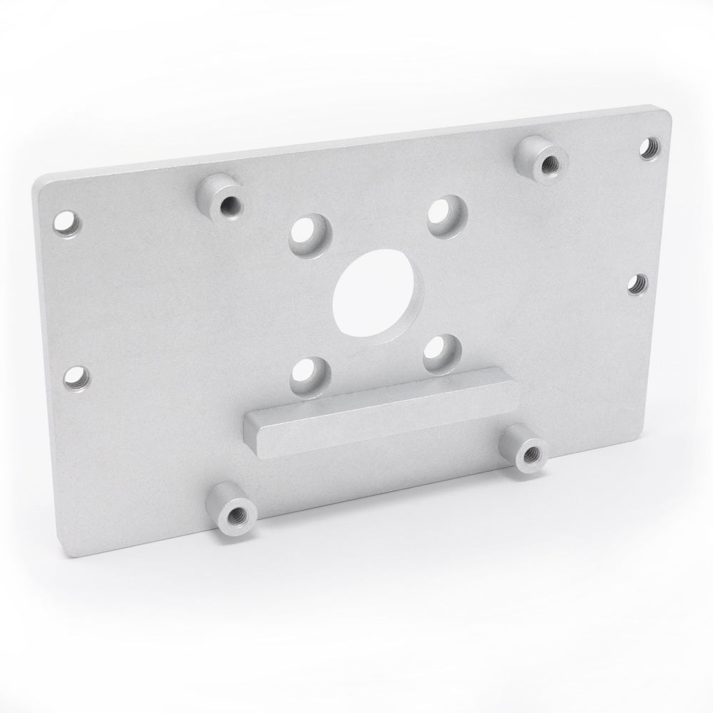 This machined aluminum bracket can be used to mount the moteus r4 controller to a motor with a 4x 25mm diameter M3 bolt pattern. It has threaded M3 holes on the outside perimeter to mount the bracket into a larger assembly.